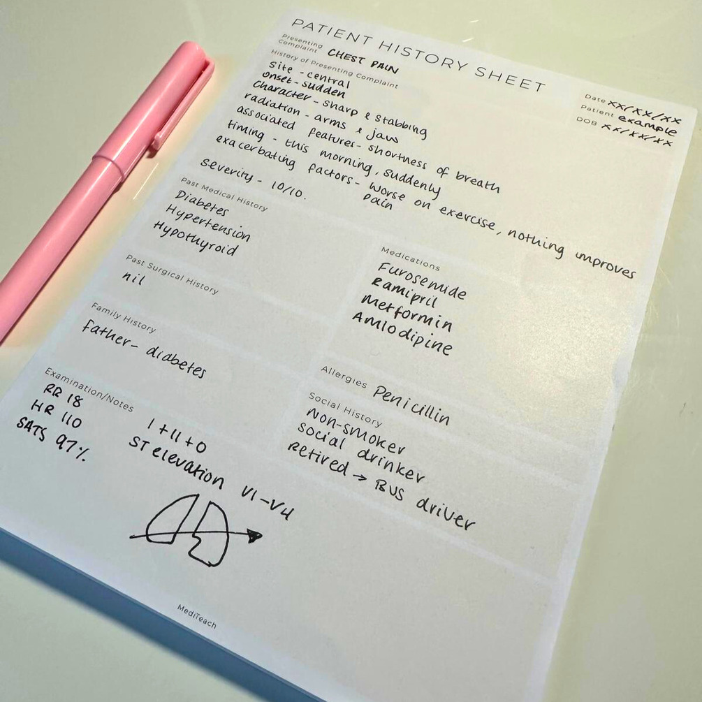 Our A5-sized History-taking pads are designed to help you enjoy and get good at taking patient histories, by following the specific structure and headings provided.
